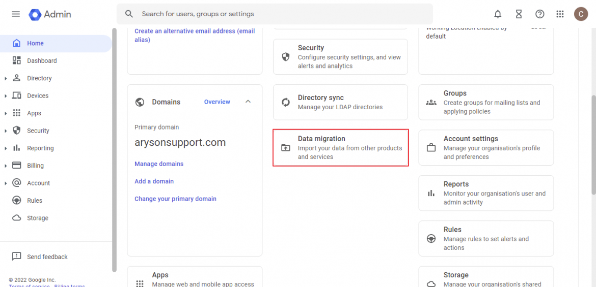 • Login to your Google Account Admin Console.